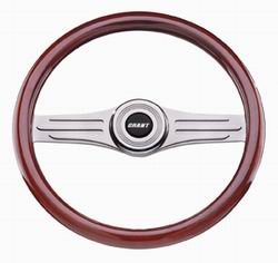 FeaturesHand Rubbed Mahogany Finger GripsLarge Dia. Machined AluminumPolished To A Mirror FinishFinger Grips On Back Of RimFor Additional Comfort And Style Grant 15872 Heritage Deluxe, Wood?