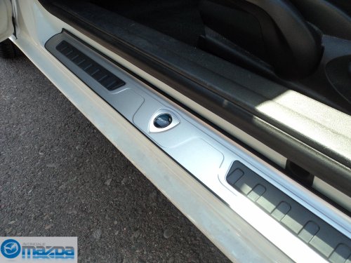 MAZDA RX-8 2008-2011 NEW OEM ROTARY DOOR SILL TRIM PLATESNEW OEM ROTARY DOOR SILL TRIM PLATES! Mazda RX-8 owners! Protect your RX-8's door sills while adding some rotary style at the same time with these brand new genuine RX-8 aluminum rotary door sill trim protectors! These awsome rotary sill protectors feature a brushed aluminum finish and durable rubber grips with the RX-8 logo inside a rotary emblem! A must have for any rotary enthusiast! They are easy to install with thier easy to fallow instructions included! If you are unsure these will fit your RX-8, please send us an email with your vin and we will be happy to confirm fitment! Order yours today from a certified Mazda dealer and keep your Mazda a Mazda with OEM parts and accessories! ZOOM ZOOM! THESE NEW OEM DOOR SILL TRIM PLATES FIT THE FOLLOWING: MAZDA RX-8 2008-2011